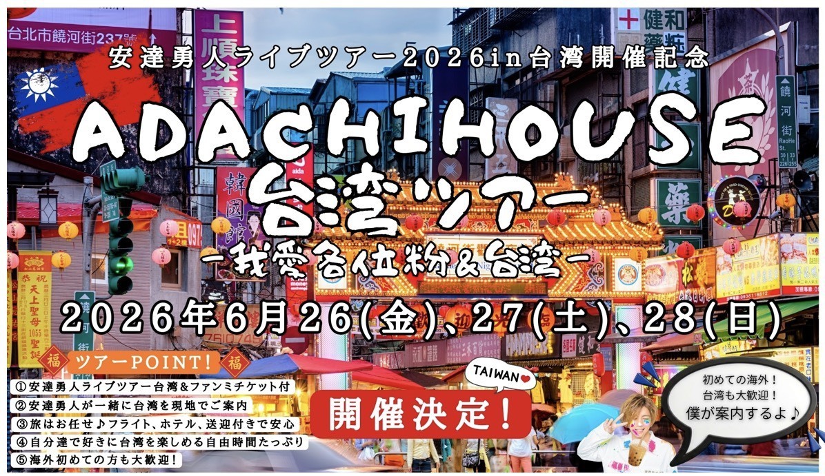 二泊三日ADACHI HOUSE台湾公演応援ツアーパック参加決定❣️